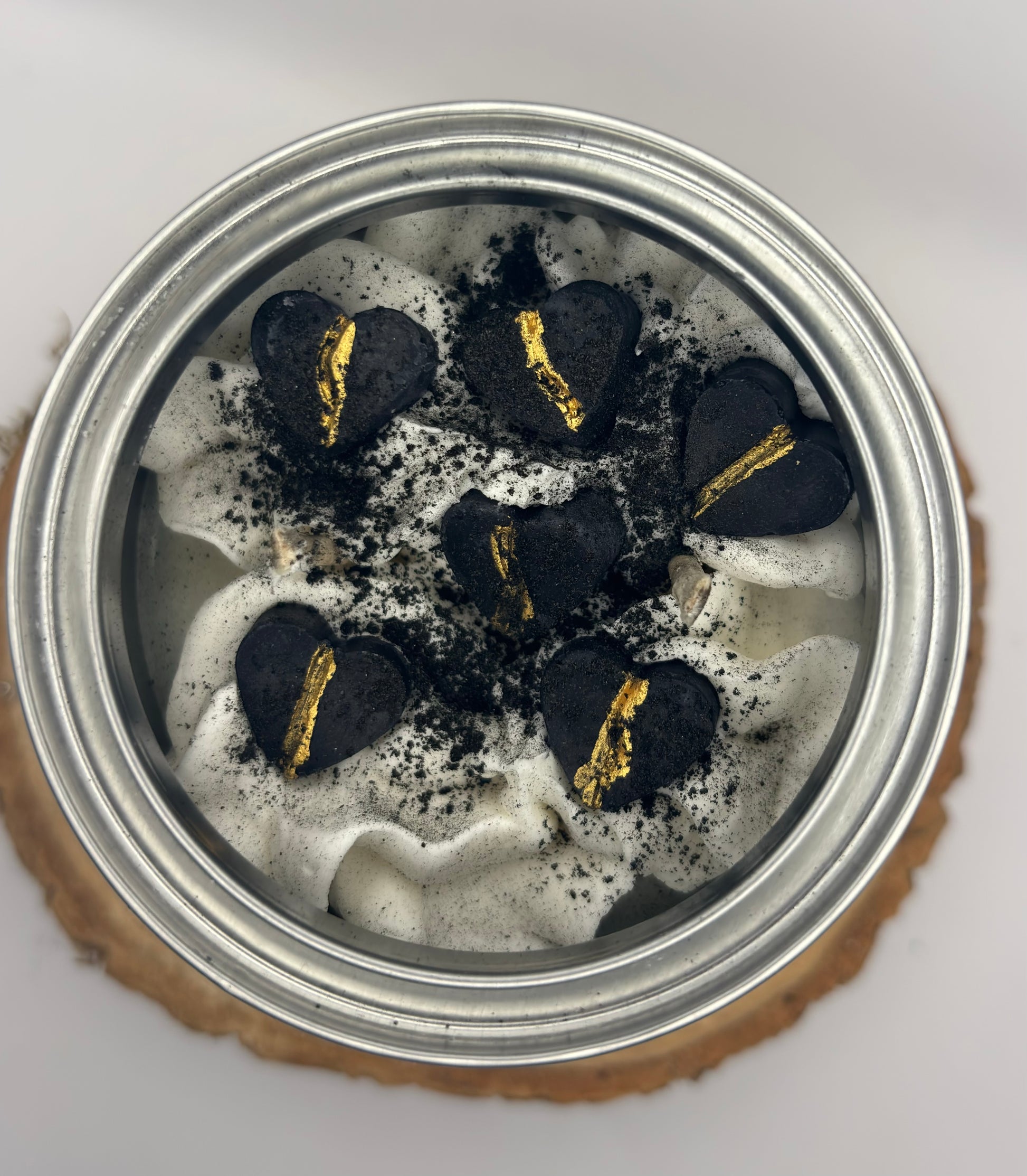 Let yourself be enveloped by the darkness of this candle inspired by Calista Nyros' Perfect Timing. Hand-poured from vegetable soy wax, it diffuses a light Tiramisu scent that transforms any room into a delectable treat. Or a killer.