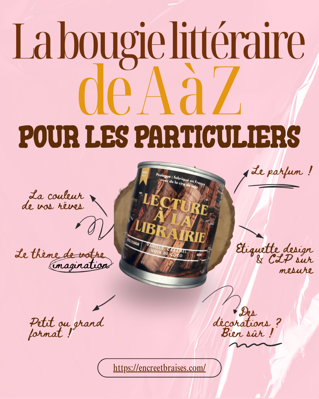 A unique, scented and decorated candle to accompany your reading and create a cozy atmosphere.